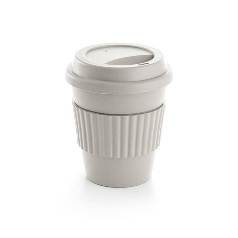 Copo de viagem. Fibra de bambu e PP. Capacidade: 380 ml. Food grade. 95 x 95 x 114 mm